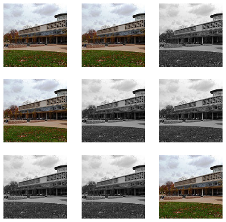 랜덤으로 이미지 전체의 색상을 grayscale로 변경한다.