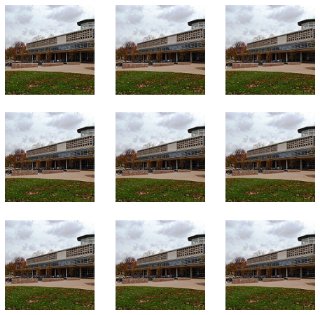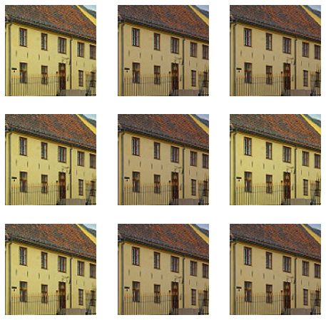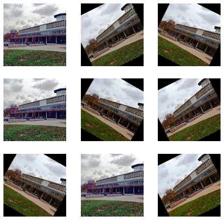모든 transform들이 확률에 따라 랜덤하게 적용되기 때문에, 총 9개의 이미지에 적용시켜서 3x3 으로 확인할 것이다.