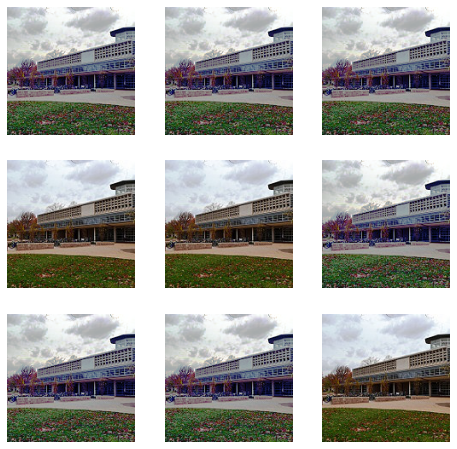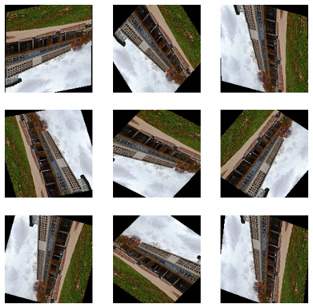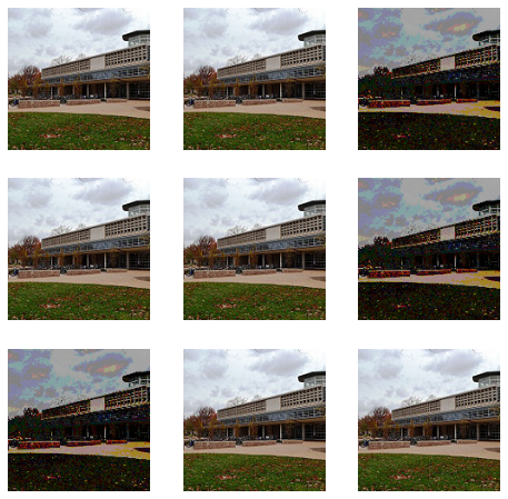 모든 transform들이 확률에 따라 랜덤하게 적용되기 때문에, 총 9개의 이미지에 적용시켜서 3x3 으로 확인할 것이다.