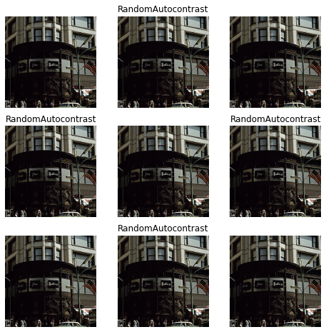 RandomAutocontrast를 적용한 이미지는 위에 타이틀을 표시했는데도, 무슨 차이가 있는 지 확인하기가 어렵다.
