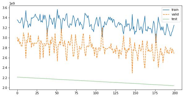 train/test 셋을 8:2로 분리하고 Fold를 3개로 나눴을 때, train set 하나에 365개의 데이터 밖에 없었다.