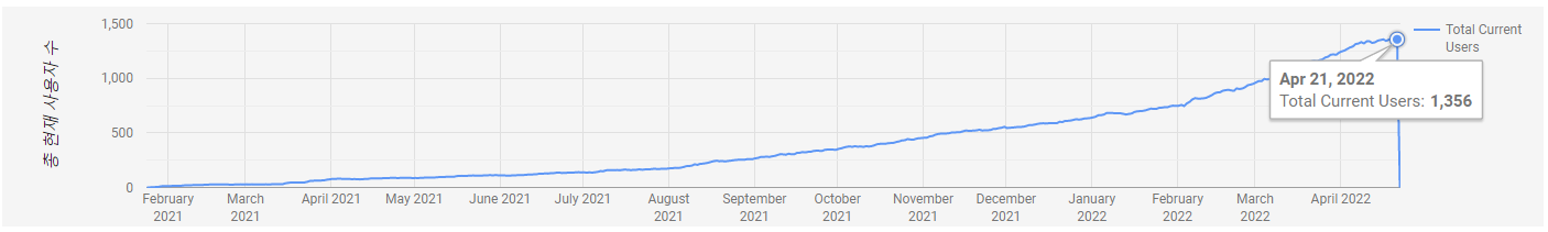 사용량이 궁금해서 통계를 자주 확인했는데, 끊임없이 증가하던 사용자 수도 이제 수렴하고 있어서 정리도 할 겸 블로그에 통계를 좀 남길까한다.