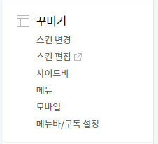 블로그 관리 페이지에서, 왼쪽의 꾸미기 섹션에 "스킨 편집"을 클릭한다.