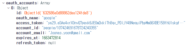 로그인 했을 때 DB에 저장된 내용에는 토큰 내용과 email 정도밖에 없다