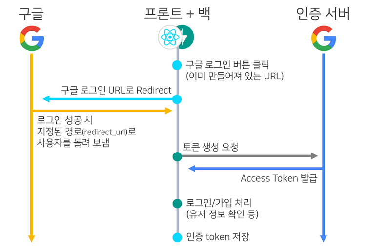 이 경우는 구글 로그인 후 다시 돌아와도 구글의 API를 사용할 수 있는 시크릿 값(Google Client ID, Google Client Secret)을 서버에서 알기 때문에 가능한 것이다.