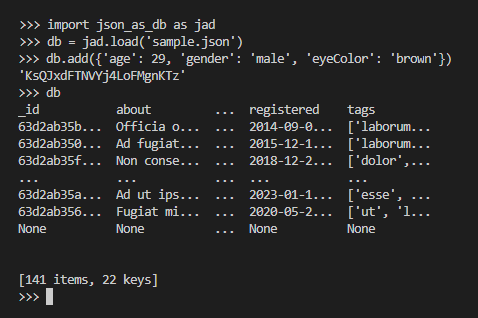 [파이썬 패키지] 설치 없이 가벼운 데이터베이스 (json-as-db; JAD) 본문