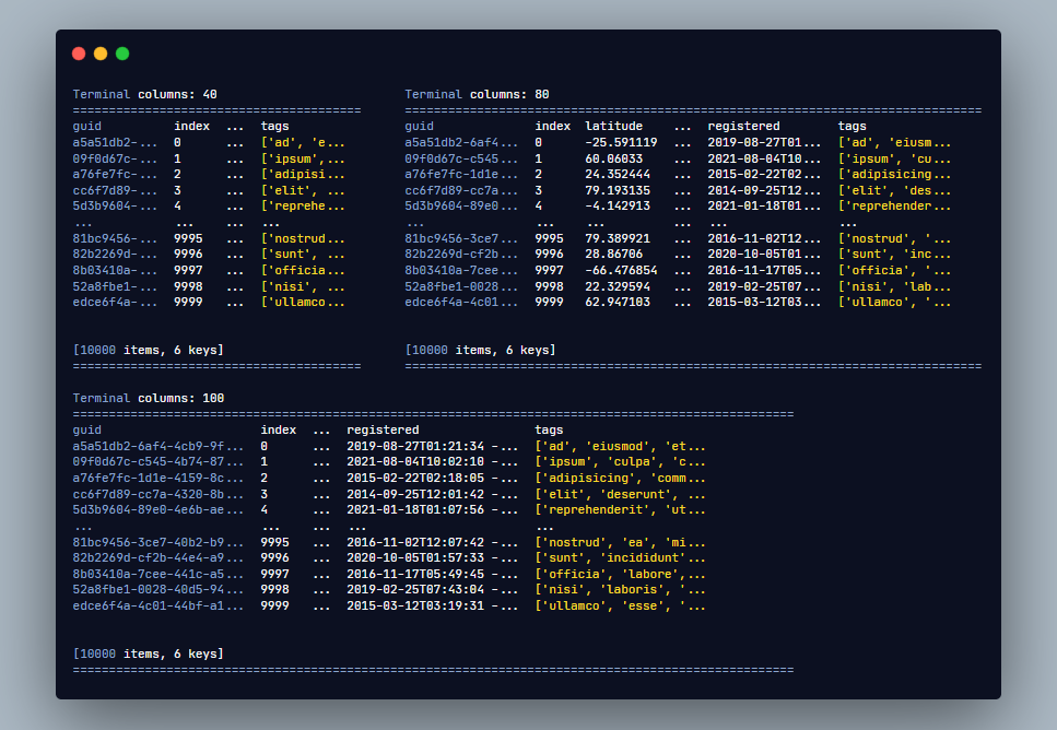 개인적으로 pandas 처럼 항목을 보여주는 게 예뻐보여서 비슷하게 동작하도록 구현했다.
