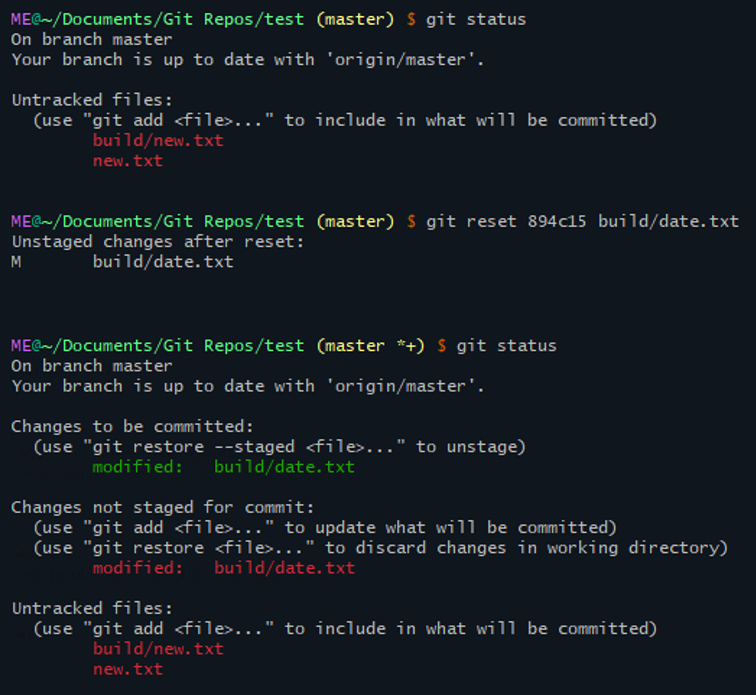 위 명령어는 "xxx.txt" 파일을 894c15인 commit 에서 가져와 스테이지에 적용하겠다는 의미이다.