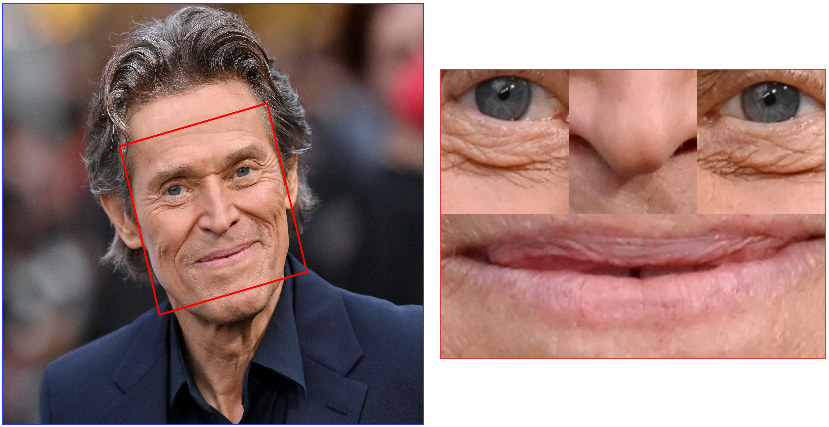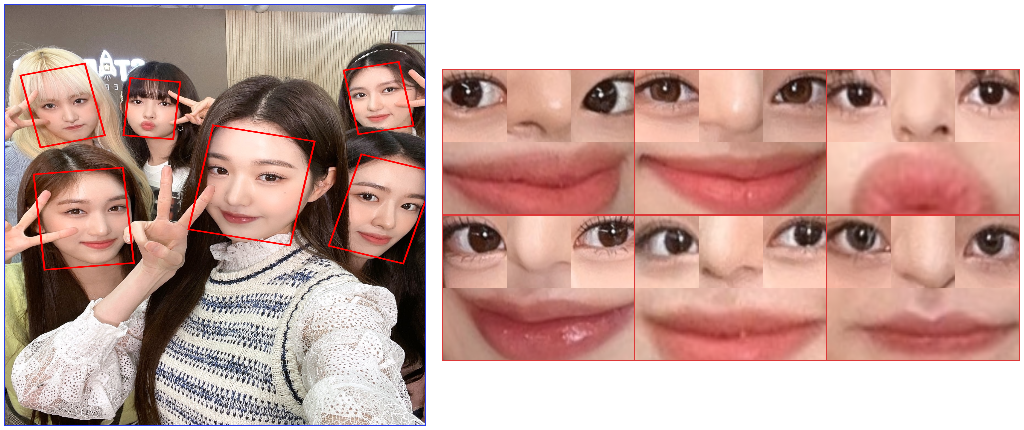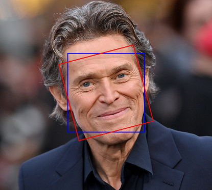 따라서 아래의 빨간 네모처럼 얼굴이 회전한 각도를 새로 구하고, 그에 맞게 다시 face landmark를 찾아야한다.