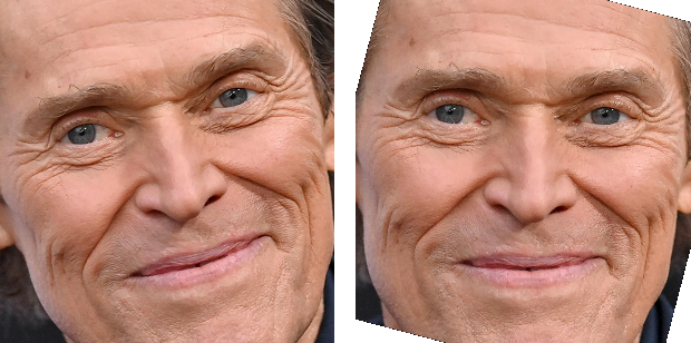 처음에는 얼굴의 테두리의 가장 끝인 1번, 17번 랜드마크를 사용해봤으나, 고개를 살짝 측면에서 찍은 경우에는 턱선이 돌아간 것처럼 보여서 얼굴 회전이 잘 되지 않았다.