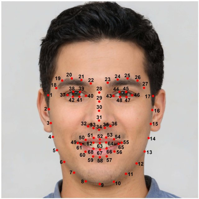 정확한 출처는 모르겠으나 주로 face landmark를 추출할 때 68개의 점을 찾는다.