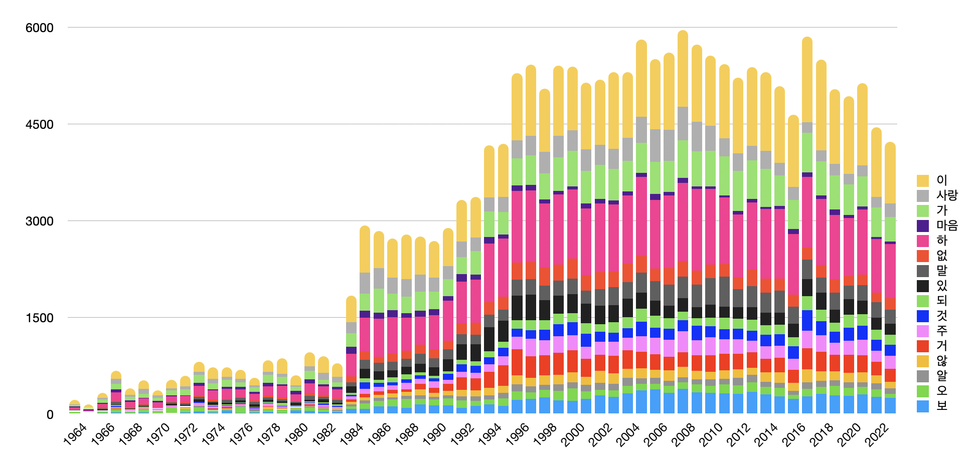 한국 노래 가사(1964~2023년) 데이터 분석해보기 본문