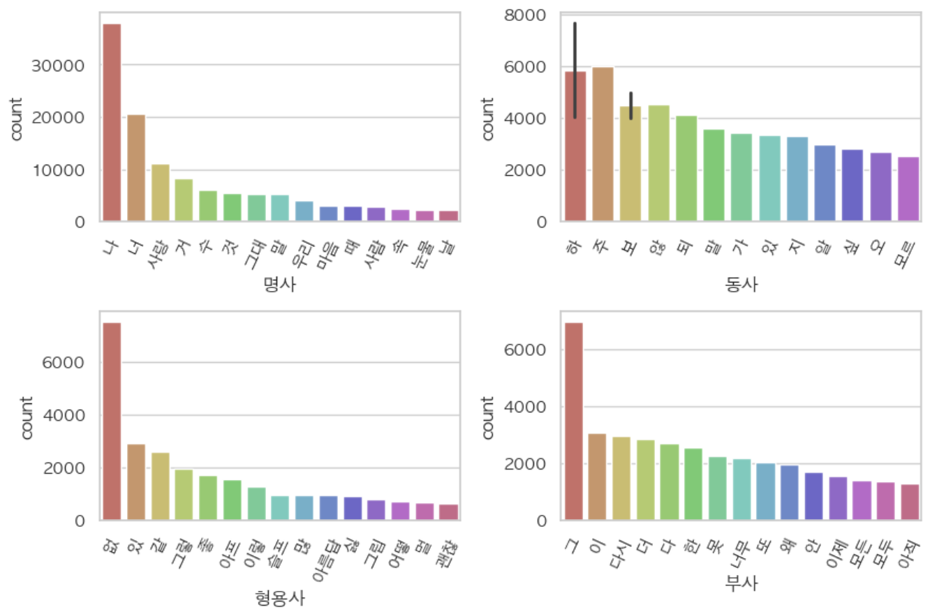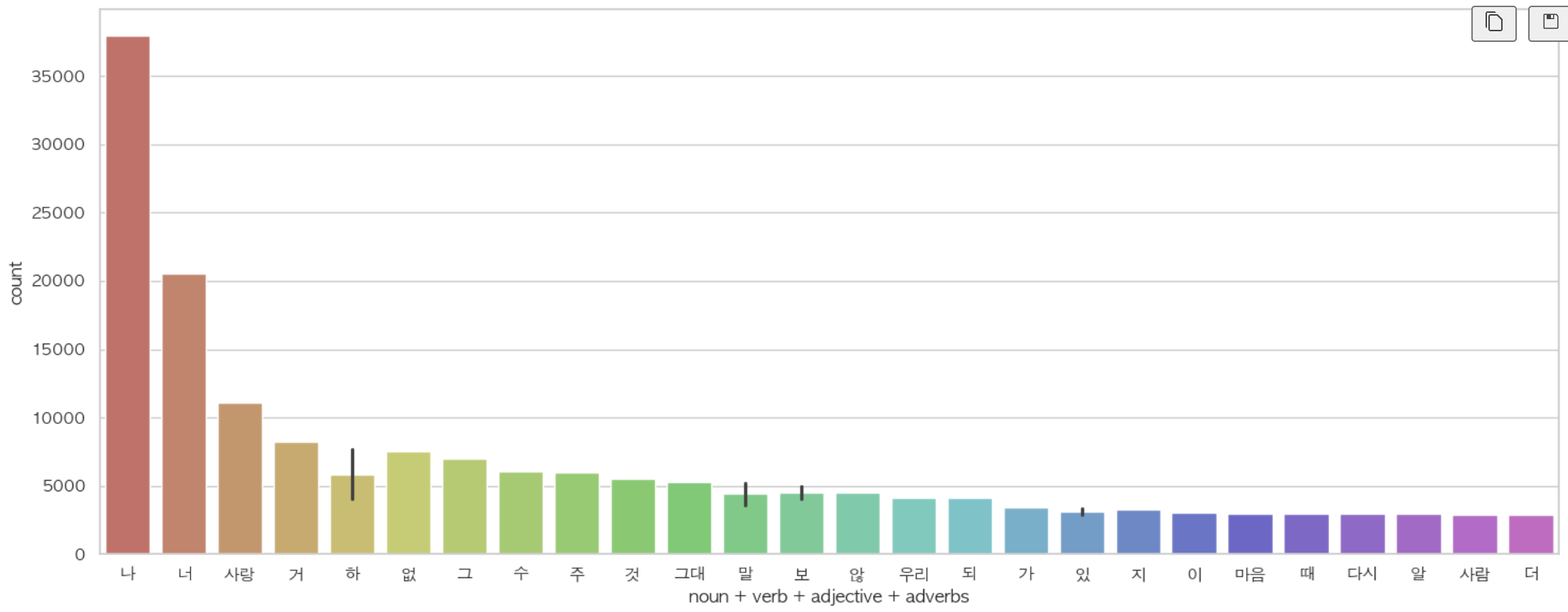 차트에 '하다', '말', '보다' 항목에 왜 오차가 표시되었는 지 모르겠다. 흠..