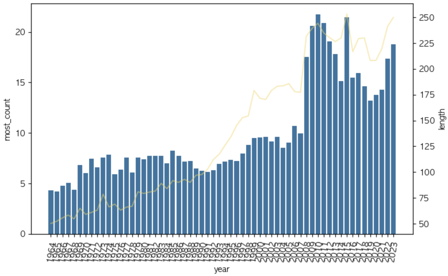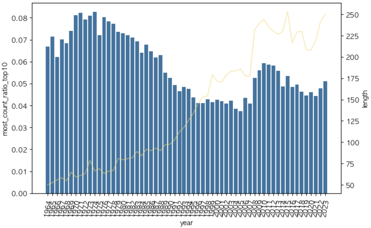 오히려 과거에는 가사가 짧았기 때문에 비율이 더 높게 나오게 된다.