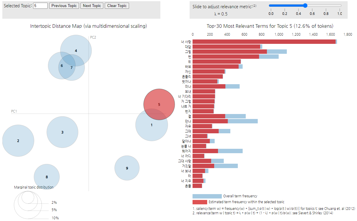 pyLDAvis 를 이용한 Latent Dirichlet Allocation 시각화하기