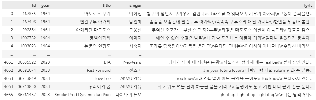 한국 노래 가사(1964~2023년) 데이터 분석해보기