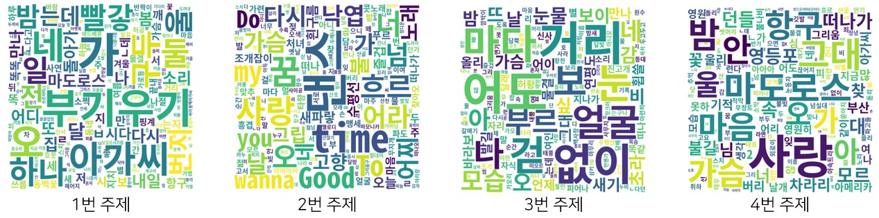 이번에는 자연어 처리에 집중하고 싶은 만큼 가사 내용을 토대로 주제별로 나눌 수 있는 지 확인해보고자 한다.